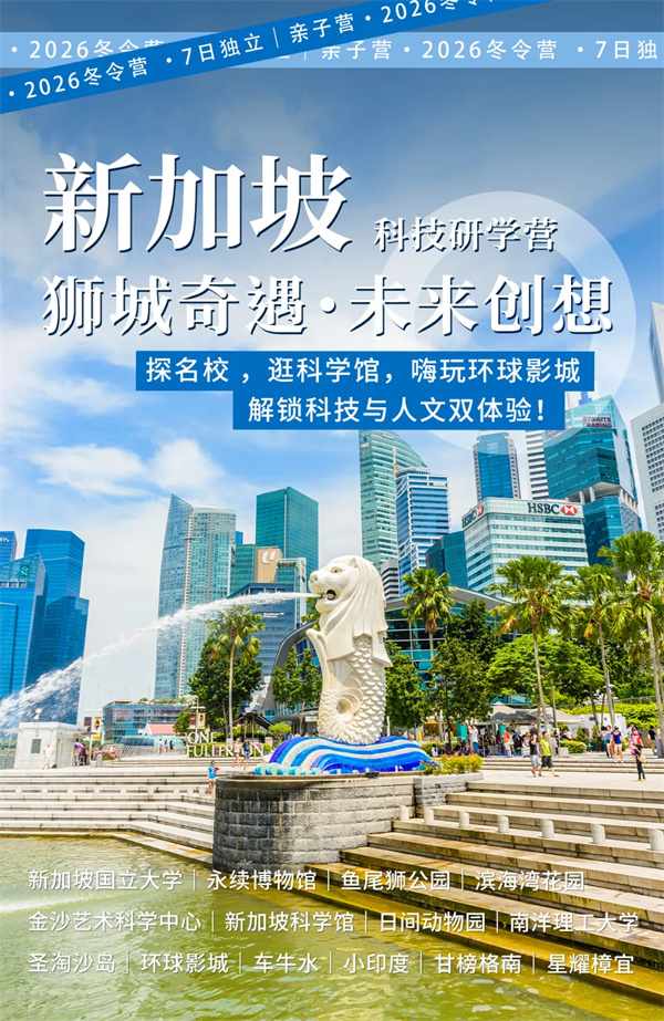 「新加坡游学」2026独立/亲子未来创想家科技冬令营(7天)狮城奇遇