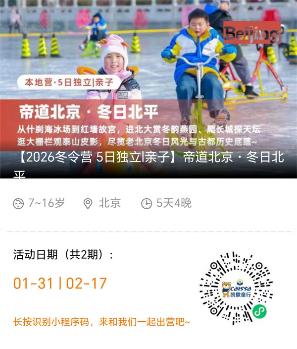 「北京研学」2026独立/亲子帝道北京・冬日北平冬令营(5天)共享京城浪漫
