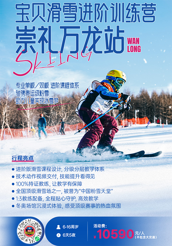 「河北体育」2026崇礼万龙进阶滑雪冬令营(6天)顶级雪场、专业教资