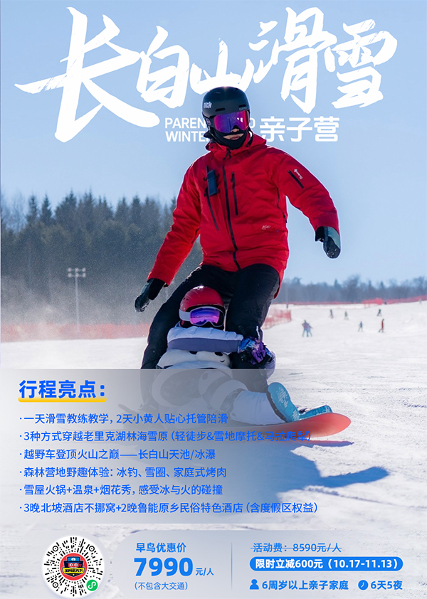 「吉林户外」2026长白山亲子滑雪冬令营(6天)10+雪地活动,驰骋2大雪场