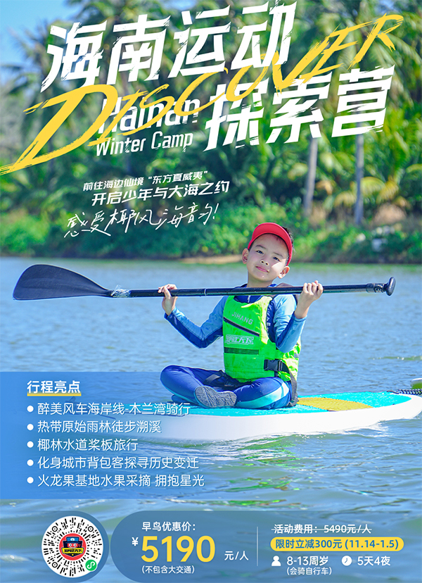 「海南户外」2026运动探索冬令营(5天)椰林桨板穿越、骑行、热带雨林溯溪、骑楼老街……