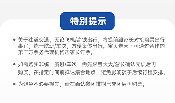 宝贝走天下,国内首家通过ISO9001“国内儿童研学旅行”认证的儿童户外活动机构,截至今日已覆盖全国20+城市。专注打造高品质儿童户外活动,践行儿童户外成长教育。目前公司已发展成国内儿童户外教育标志性企业。获得包括著名天使投资人王刚、暾澜资本、上市公司皇氏集团、华盖资本、丰厚资本等机构从天使轮到B轮的融资。公司核心团队成员多来自阿里巴巴、中国美院、新东方等互联网企业与教育机构,汇聚资深户外活动玩家与儿童教育专家。公司总部在杭州,下设北京、上海、广州、深圳、南京、济南、西安、成都、厦门、福州、武汉、长沙、苏州、宁波等20+城市分部。