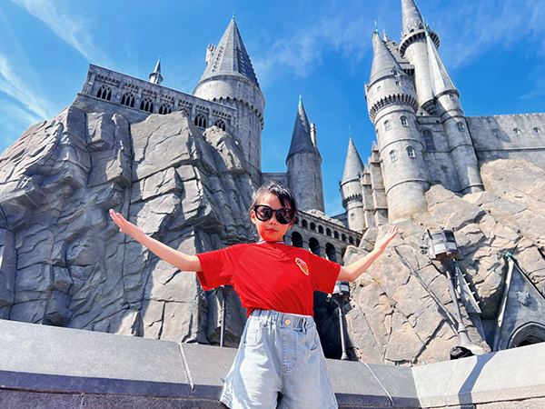 在哈利波特的魔法世界,游客可以在骑乘设备上尽情“飞行”