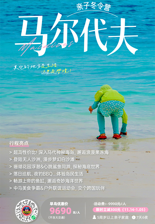 「亚洲游学」2026马尔代夫亲子冬令营(7天)出海浮潜体验