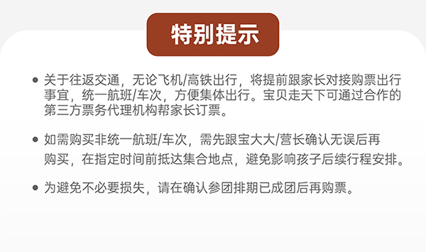 宝贝走天下,国内首家通过ISO9001“国内儿童研学旅行”认证的儿童户外活动机构,截至今日已覆盖全国20+城市。专注打造高品质儿童户外活动,践行儿童户外成长教育。目前公司已发展成国内儿童户外教育标志性企业。获得包括著名天使投资人王刚、暾澜资本、上市公司皇氏集团、华盖资本、丰厚资本等机构从天使轮到B轮的融资。公司核心团队成员多来自阿里巴巴、中国美院、新东方等互联网企业与教育机构,汇聚资深户外活动玩家与儿童教育专家。公司总部在杭州,下设北京、上海、广州、深圳、南京、济南、西安、成都、厦门、福州、武汉、长沙、苏州、宁波等20+城市分部。