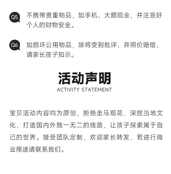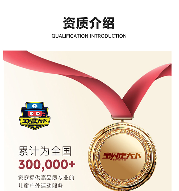 宝贝走天下,国内首家通过ISO9001“国内儿童研学旅行”认证的儿童户外活动机构,截至今日已覆盖全国20+城市。专注打造高品质儿童户外活动,践行儿童户外成长教育。目前公司已发展成国内儿童户外教育标志性企业。获得包括著名天使投资人王刚、暾澜资本、上市公司皇氏集团、华盖资本、丰厚资本等机构从天使轮到B轮的融资。公司核心团队成员多来自阿里巴巴、中国美院、新东方等互联网企业与教育机构,汇聚资深户外活动玩家与儿童教育专家。公司总部在杭州,下设北京、上海、广州、深圳、南京、济南、西安、成都、厦门、福州、武汉、长沙、苏州、宁波等20+城市分部。