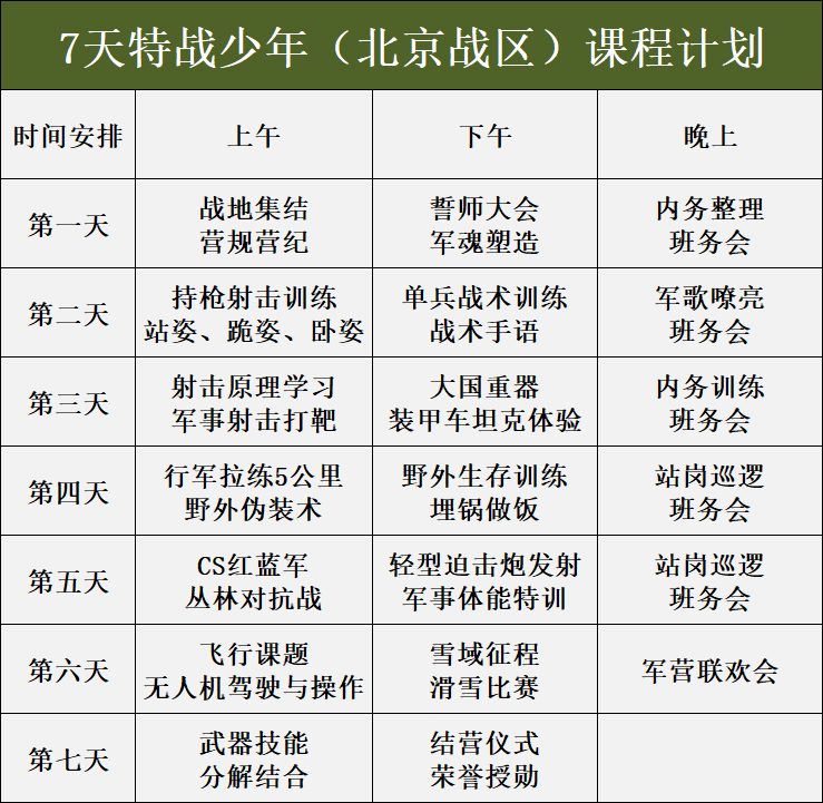 (5)冬令营活动采用全封闭军事化管理,营员统一食宿,活动期间不安排家长探视;
