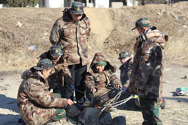 野外行军拉练考验体力与意志,学习野外方位判断、伤口包扎处理、潜伏伪装术;锻炼营员的意志与韧性。