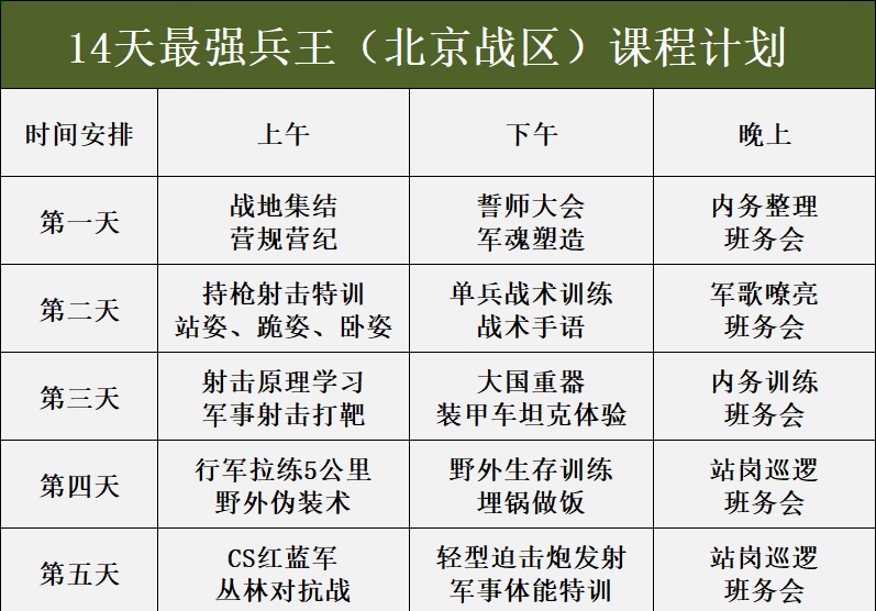 ☆军事素质过硬,在部队服役三年以上的专业军士教官团队;