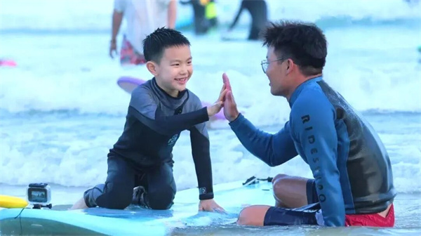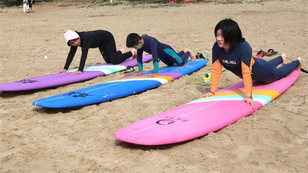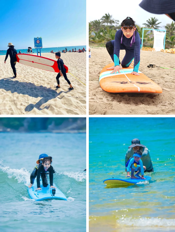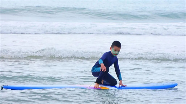 蓝天、白云、碧水、银滩,浓浓的海岛气息扑面而来,这样的天气与场景怎么能不冲浪呢!这里的浪潮刚刚好,即使是入门级的冲浪者也可以安心玩。