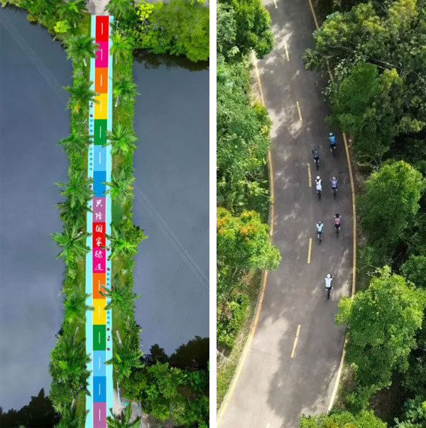 骑上单车,穿梭在层层叠叠的绿荫里,这是一条被绿意包裹的热带秘境,这里有挺拔的椰林、潺潺的溪流、还有挂满果实的热带果园。沿着绿道缓缓前行,身旁是开满野花的绿道,身后是随风飘动的衣角!鼻尖是萦绕着的草木清香,这里连风都带着温柔的味道。