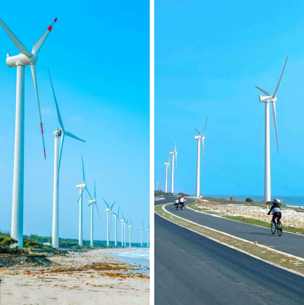 在这弥漫着自由气息的海角,我们踩着踏板奔向木兰湾的天际线,列队驶过成片的风车群,白色扇叶在阳光下划出温柔弧线,分分钟get电影里的治愈系骑行画面。