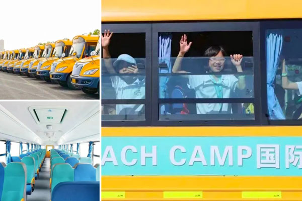 全部采用全部符合国标的专业校车,所有员工必须经过服务流程、消防急救、服务礼仪的严格培训,让所有服务人员用专业和热情为每一位孩子的安全保驾护航。