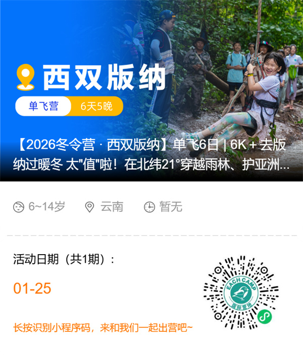 「云南研学」2026西双版纳单飞冬令营(6天)遇见北纬21° 开启一场自然人文的碰撞之旅