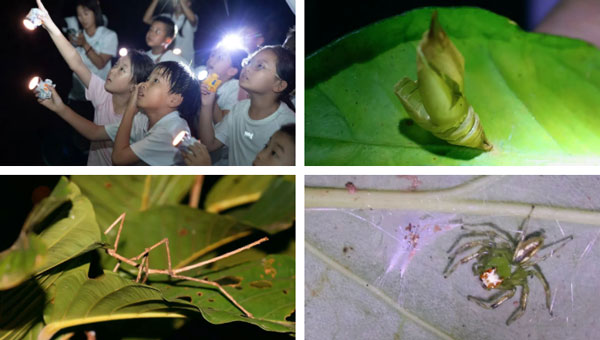 除了白天能在雨林中遇见的“自然朋友”,晚上的植物园也是“热闹非凡”。在夏天,你可以看到大片的萤火虫,每棵树都像挂上了小灯笼,你还有可能遇到比手长的竹节虫,各种蛾类、蜘蛛、螳螂、锹甲……