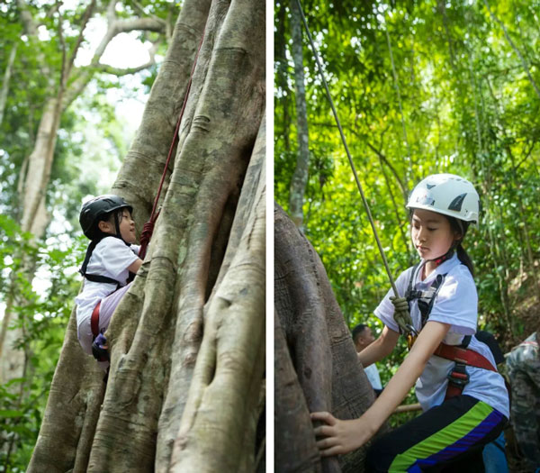 小朋友们将会穿上专业的攀岩装备,爬上绞杀榕感受林间的阳光与鸟鸣,看一看交错的树枝中间到底包裹的是什么东西!