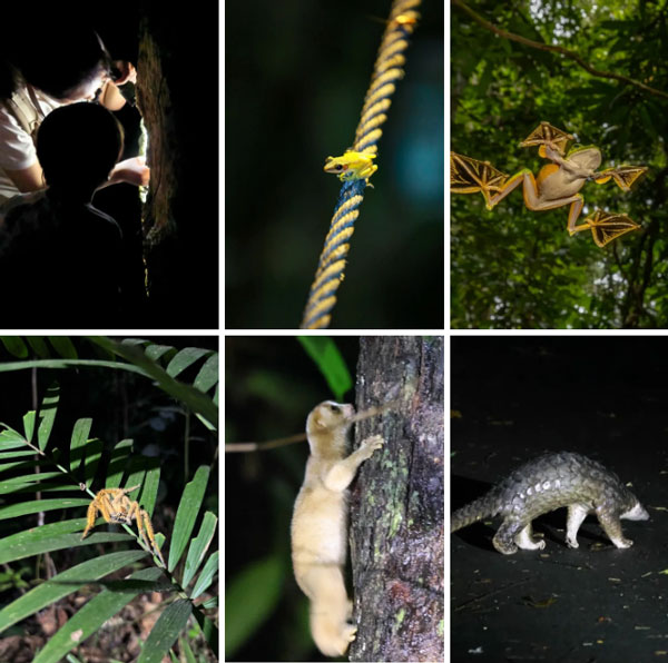 我们甚至还观察到一些在树冠层活动的哺乳动物,如松鼠、蜥蜴,以及懒猴等。