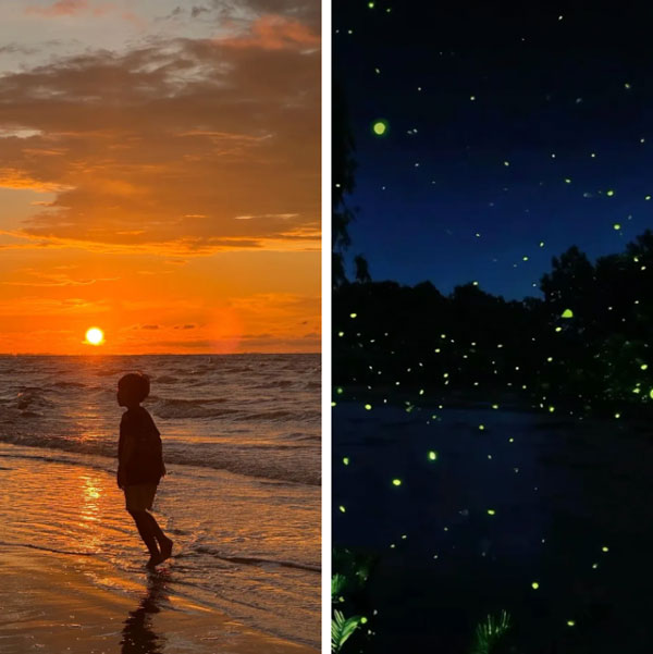 傍晚时分的卡瓦红树林之旅是一场自然的魔术表演。当夕阳的余晖洒在红树林上,真正的奇迹才开始上演——成千上万的萤火虫在红树林中同步闪烁,如同圣诞节的灯饰。