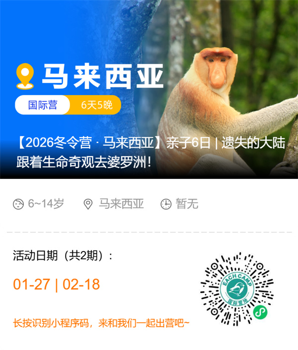 「亚洲游学」2026马来西亚亲子冬令营(6天)遗失的大陆 跟着生命奇观去婆罗洲