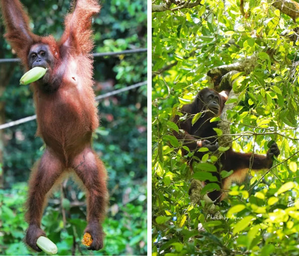 大多的红毛猩猩都是孤儿,它们曾在其他森林被发现或受伤而带到中心被保护和救助,这里的工作人员指引并教它们生活技能例如如何爬树或吃东西,让它们能有一天可以被释放回归到大自然。