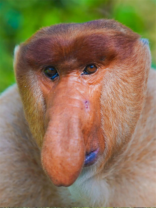 长鼻猴最引人注目的,无疑是它们那巨大、柔软而下垂的鼻子,尤其是成年雄性的鼻子,可以长到超过10厘米,兴奋或示警时会充血挺立。