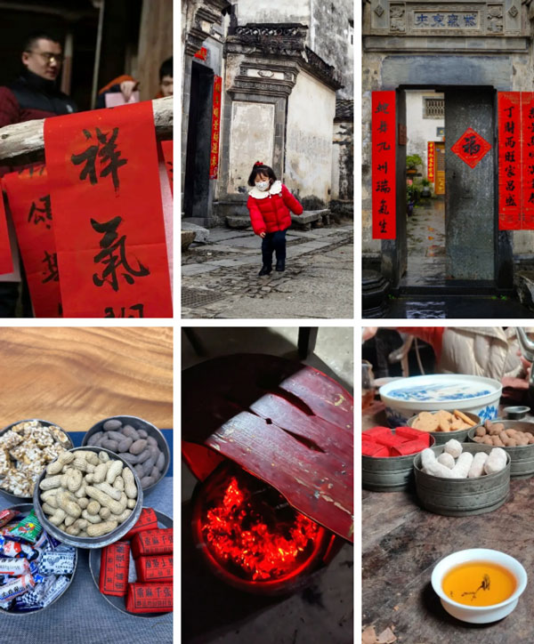 和南屏老乡一起贴春联、坐火桶、吃锡格子茶,品着香茗,就着茶点,听老人讲解每样点心背后的吉祥话,年节的仪式感便在杯盏中流淌。