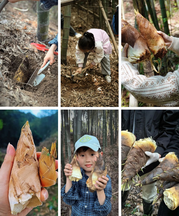 挖冬笋 一场霜冻过后,土地被冻得硬实,地下的冬笋却积蓄了满满的鲜甜,正是挖掘的最佳时节。学着村里伯伯的样子,在竹根旁寻找微微隆起的裂缝——“笋拱”。一锄头下去,泥土翻起,带着清冽香气的褐黄色笋尖便露了出来。为今晚土灶年饭里加一道菜!