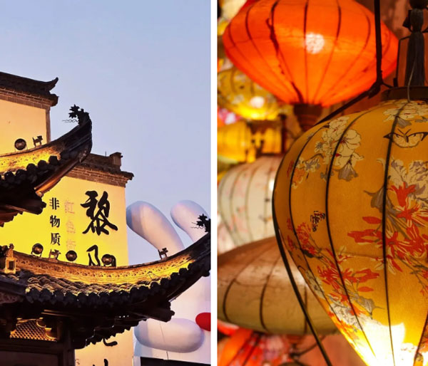 当夜幕降临,我们提灯夜游古村,金色的、红色的、彩色的鱼儿在空中游弋、摇摆、追逐,与月沼中倒映的灯火星辰交织在一起,这是最古老、也最欢乐的徽州年味。最后,我们一起拍摄出光影摇曳中拍摄国风大片。