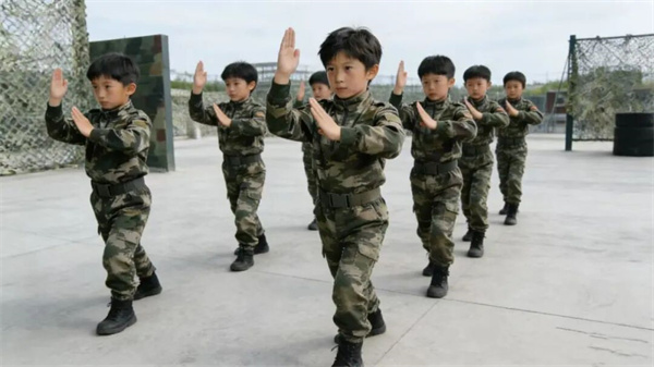 教官与营员同吃同训同住,杜绝孩子打闹、嬉戏、争吵、斗殴等不文明现象