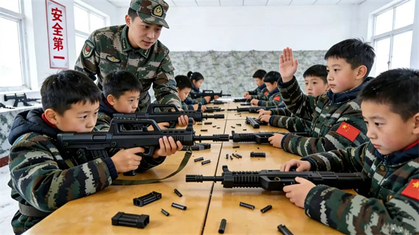 轻武器枪械认知与拆装:进行95式步枪教具的完全拆解与组装竞赛,理解机械之美与纪律之严;