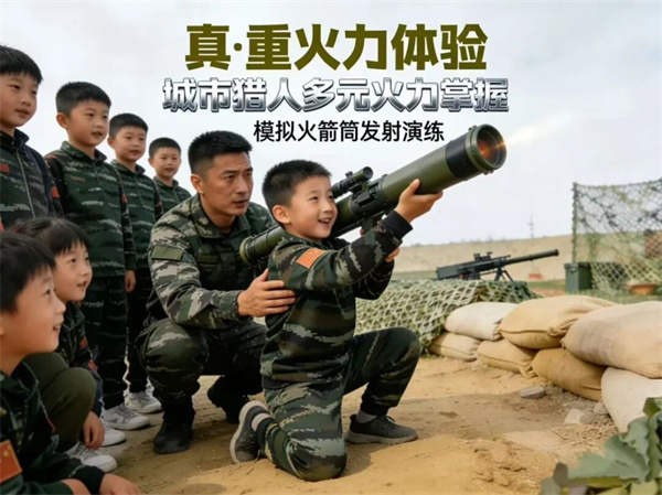 火箭筒发射教学演练:模拟火箭筒发射装置,学习立姿、跪姿肩扛射击要领,体验瞄准、击发、后坐力模拟及战术规避的全流程。
