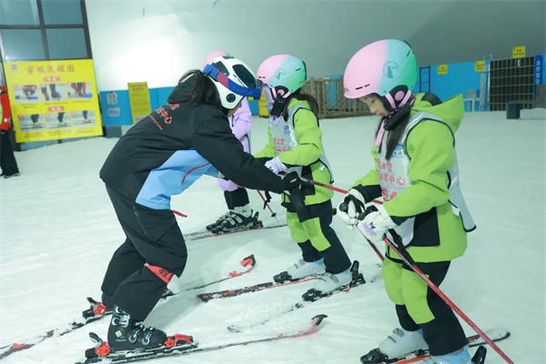 雪上第一课:安全是第一位!在专业的教练带领下,从认识装备开始。单板少年学习单脚J型转弯,感受第一次滑行的乐趣;双板小将则从平地互动、犁式滑降入门,稳稳迈出第一步。