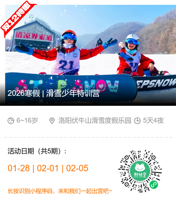 「河南体育」2026洛阳滑雪少年特训冬令营(5天)让你孩子真正掌握专业滑雪技能
