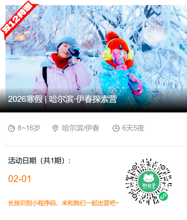 「黑龙江研学」2026哈尔滨·伊春探索冬令营(6天)深度探访哈工大,玩美冰雪大世界