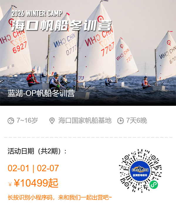 「海南户外」2026蓝湖OP帆船冬令营(7天)孩子们和“国家帆船队”同在一个场地训练!