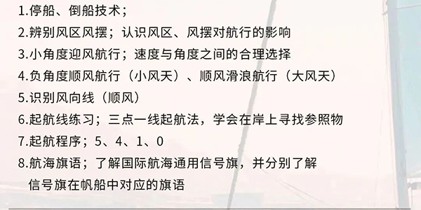 系统掌握符合国际标准的帆船操作技能,奠定航海素养坚实基础。