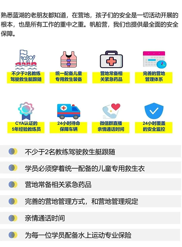 帆船营的教练团队全部是通过CYA认证的资深教练员,不但有过硬的专业资质,更有5年以上丰富的青少年培训经验。