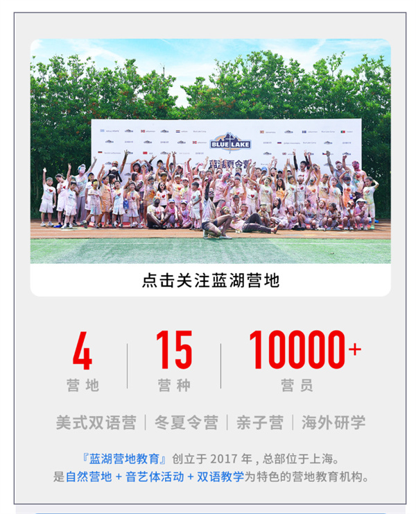 专业医疗团队、24小时应急医护及救护车、随行药品处置配备、参营保险响应、应急事件无缝沟通机制……深耕美式营多年的蓝湖,在孩子的安全保障方面始终如一践行“蓝湖标准”。