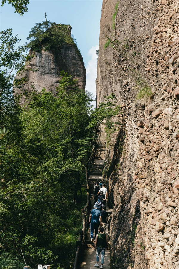 剑门关的山势极陡、路窄如线,行人贴着岩壁前行,从山下仰望,就像鸟儿在崖间飞过,因此被称为“鸟道”