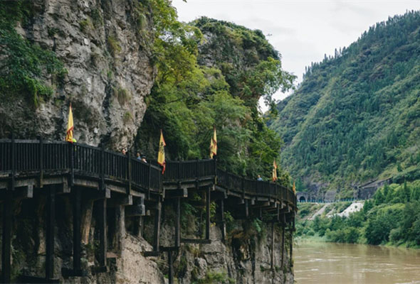 川陕公路最险峻的路段之一,被称为“挂在绝壁上的公路”