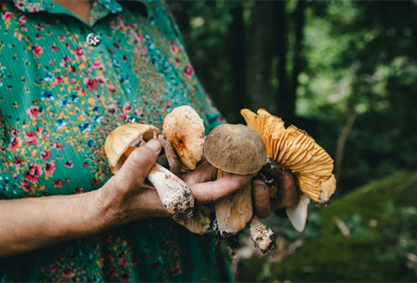 村民们热情地和我们分享在森林里捡来的蘑菇
