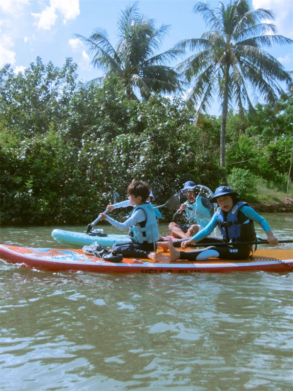 桨板划行在热带雨林河道中,感受水陆双栖的生态智慧。