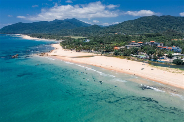 万宁日月湾不仅有国家体育总局认证的冲浪训练基地,更是《夏日冲浪店》等综艺取景地。