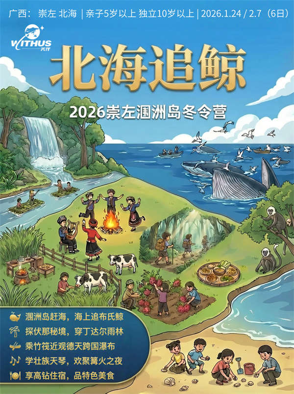 「广西研学」2026崇左涠洲岛冬令营(6天)北海追鲸 | 寻白头叶猴,德天瀑布界河竹筏