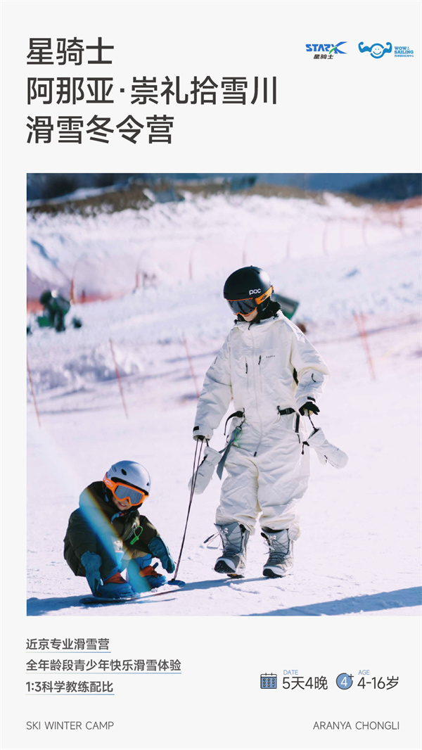 2025-2026雪季,星骑士联合西港国际航海中心推出专业趣味兼具的阿那亚·崇礼滑雪冬令营,在拾雪川打造孩子们的快乐滑雪度假时光。