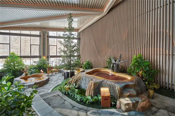 雪山和温泉从来都是天造地设的绝配,地下2400米火山温泉疗愈体验,外面大雪纷飞,室内泉水通过山体自溢涌出,富含多种矿物质,感受大自然的馈赠,是滑雪后舒缓身心的不二之选~