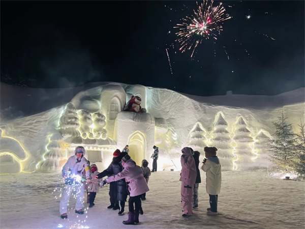 篝火跃动映出孩子们的额笑脸,雪夜一起围坐共享暖意,欢声笑语流连忘返~