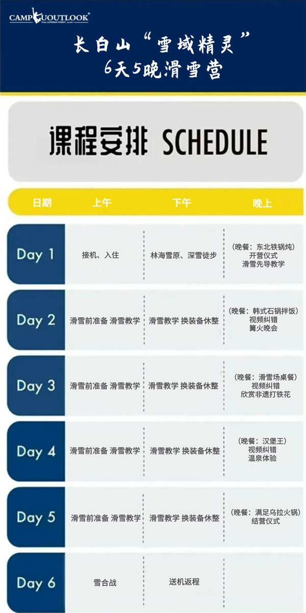 从2021年开始,欧露克就带领长三角和大湾区以及华北的营员们,来到东北吉林进行滑雪主题的冬令营,转眼已是四年,今年的滑雪营,我们依然将来到有东方瑞士之称的中国十大名山之一的长白山。在2025年满意度99%的滑雪营基础上,继续带领营员们开启雪域探险之旅,在冰雪世界中绽放活力,书写属于自己的滑雪故事!