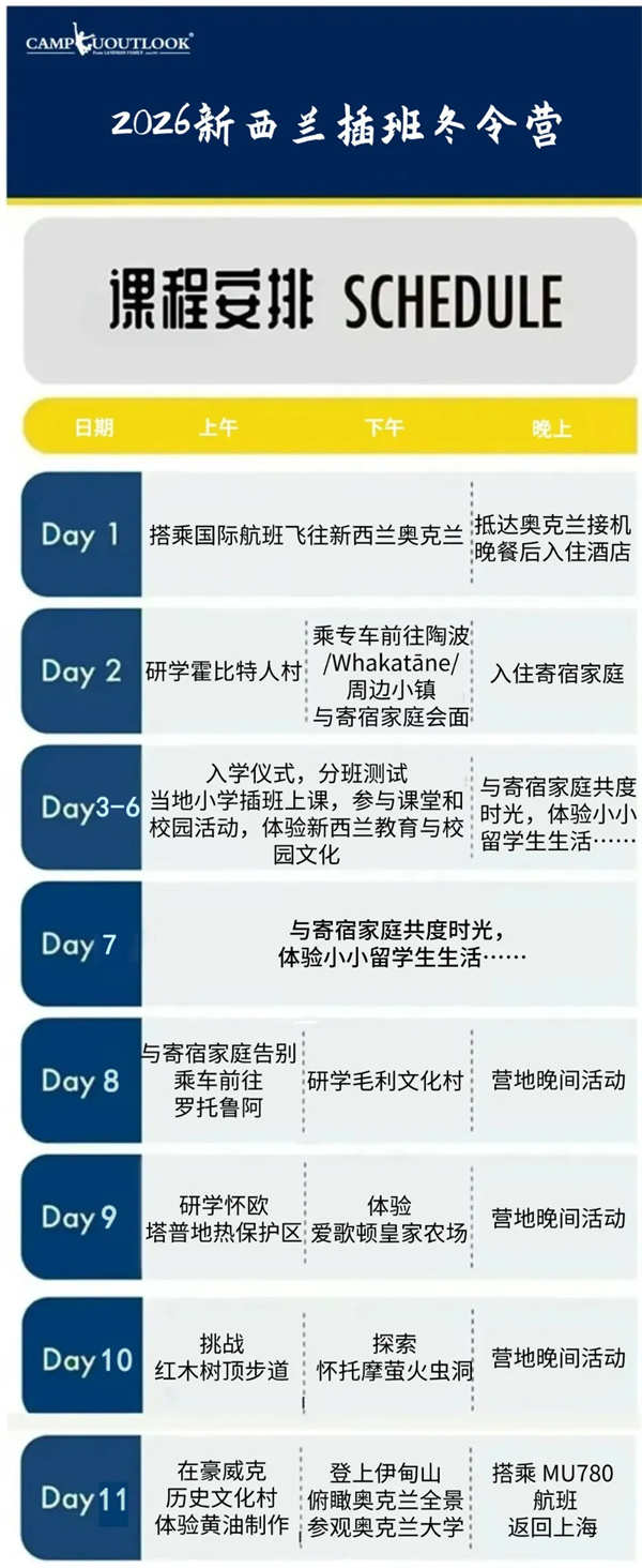 营地主题:2026年新西兰插班冬令营