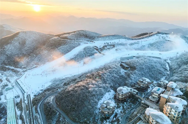 6 万多平方米的雪场被翠竹群山环抱,每年 12 月中旬至次年 2 月中旬,雪洁冰清的场景宛如童话世界。